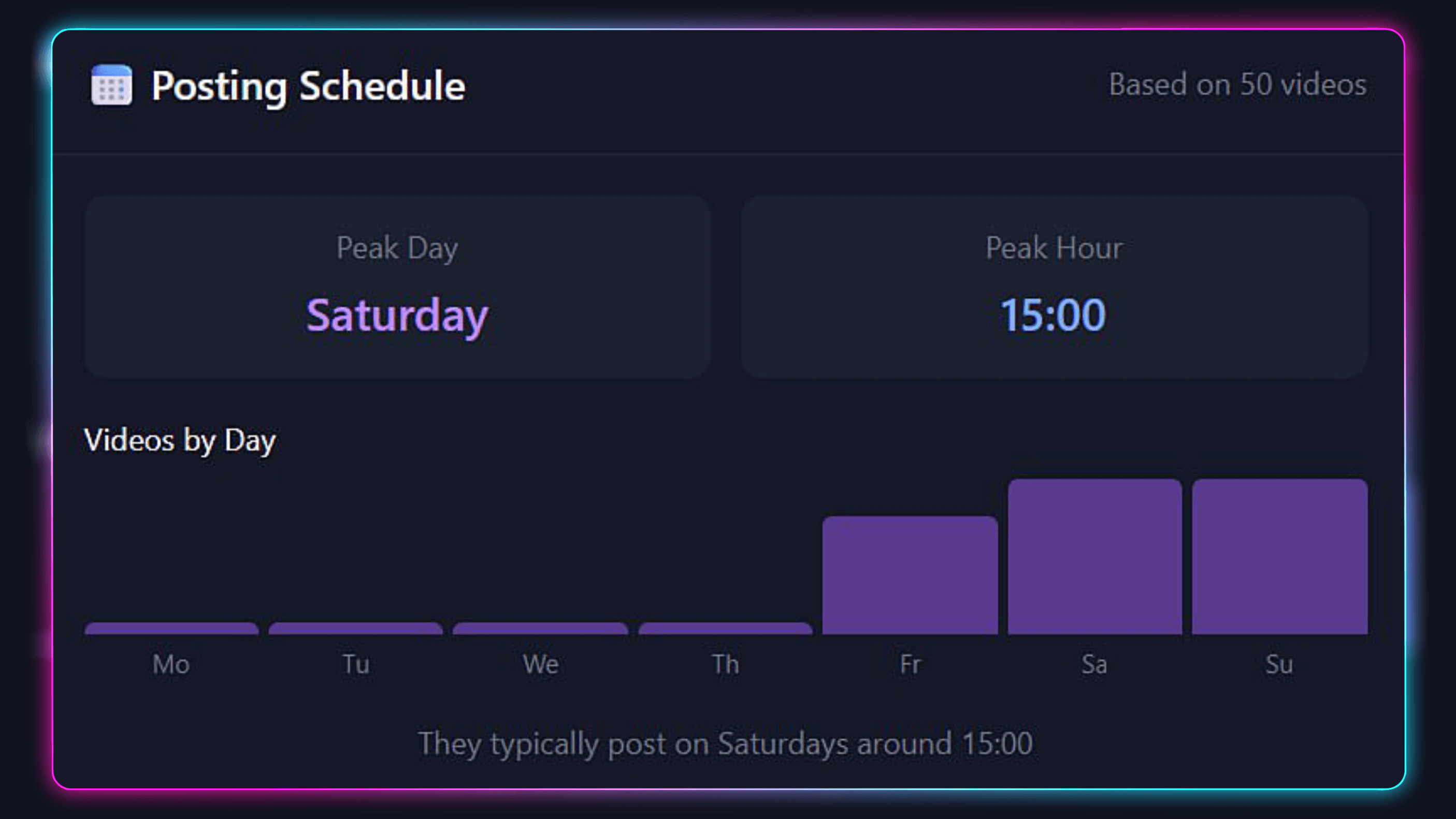Discover when your competitors are posting for maximum reach. Analyze their upload patterns to find optimal timing gaps you can exploit.